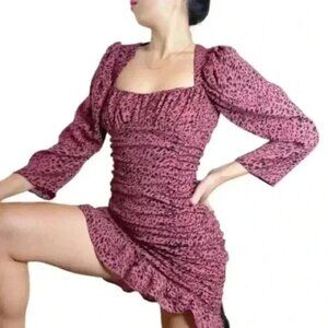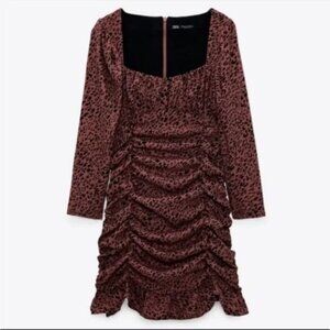NWOT Zara marsala pink leopard print midi dress. Square neck. Back zipper closure. Good condition. NO TRADES.