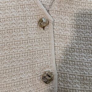 Textured top. Textured skirt. Gold accent buttons.