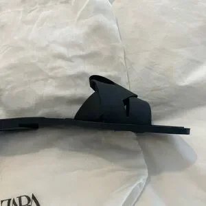 Zara Matte Black Rubber Woven Strap Slide Sandals 38/8.5 NEW