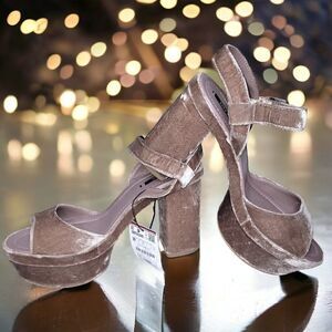 Zara Mauve Pink velvet exotic leather platform high heel sandals NWT