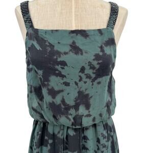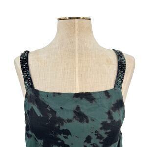 Zara Maxi Dress Tie Dye Printed Chiffon Beaded Straps Green Size Small