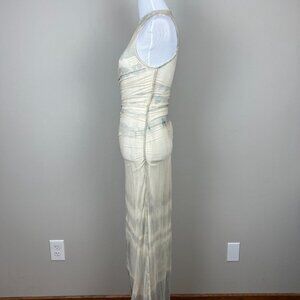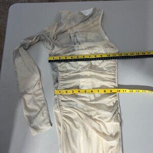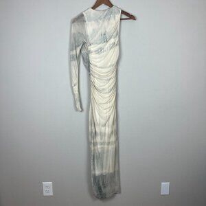 Zara Maxi Dress Womens XS Cream Gray Ruched One Shoulder Long Sleeve Mesh Y2K