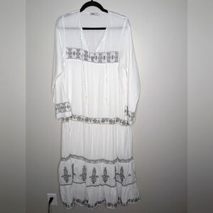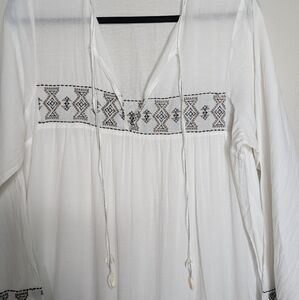 Perfect summer cotton dress. Partially lined. Black and brown embroidery. There are loose or missing embroidery threads in several spots.