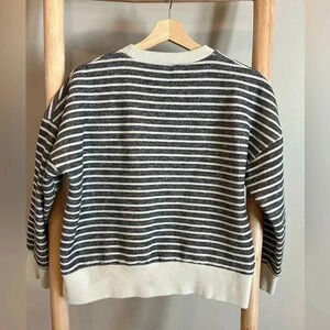 Zara size Medium Blue and Soft White crewneck Striped pullover Sweatshirt. Stains on the lower band as shown in pictures