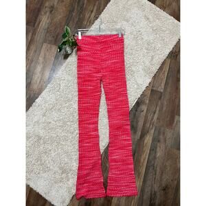 Zara Medium Pink Heather Ribbed High Waisted Flare Leg Sweater Knit Pants NWT