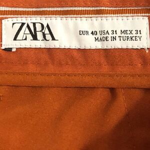 Zara Men Burnt Orange Flat Front Cotton Chino Trouser Pants Sz 31W