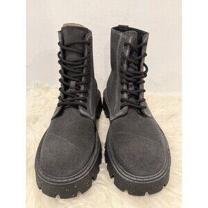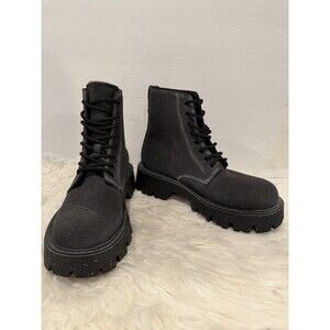 Zara Men Lace-Up Black Canvas Chunky Lug Style Boots Distressed