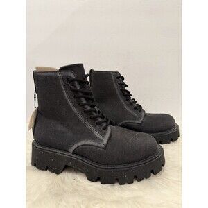 Zara Men Lace-Up Black Canvas Chunky Lug Style Boots Distressed US 8 EUR 40 NWT