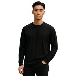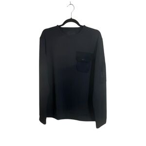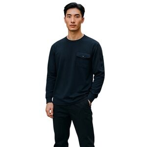 Zara Men Waffle Knit Navy Blue Patch Pocket Crew Neck Long Sleeve Shirt