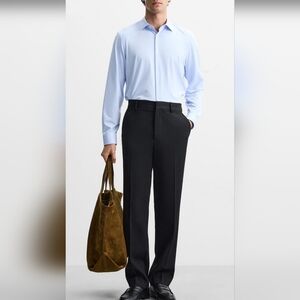 Zara Men's 100% Cotton Button Down Dress Shirt, Slim Fit, Sky Blue, XL