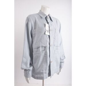 Zara Mens 100% Linen Overshirt Jacket Shacket S Small Light Blue 0706/384 NWT