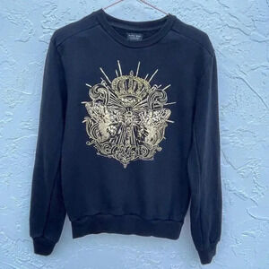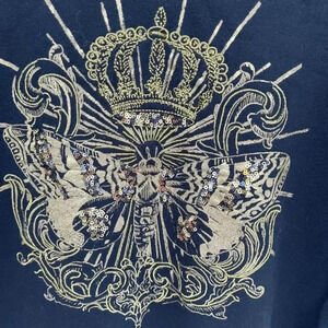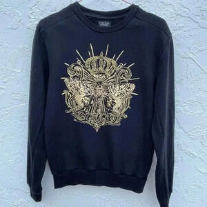 Zara Mens Beaded Crown Butterfly Design Pullover Sweater Black Sz Small