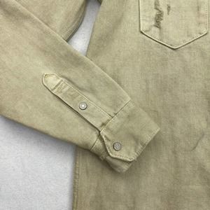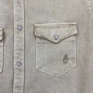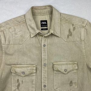 Zara Mens Beige Flap Pockets Relaxed Fit Long Sleeve Button Up Shirt Size Small