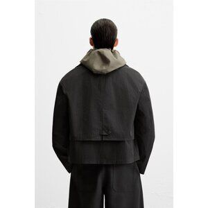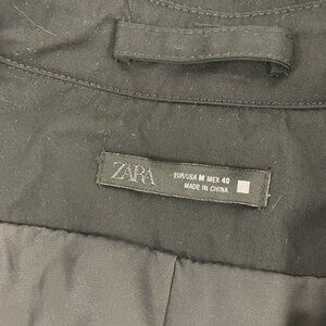 Zara Mens Black Cropped Trench Coat M Double Breasted Long Sleeve 8281/101 NWT