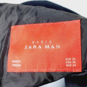 Zara Men's Black Mock Neck Suede Front Snap Winter Puffer Jacket Size XL