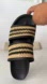 Stylish Zara sandals with black and tan stripes. Ideal for casual wear.