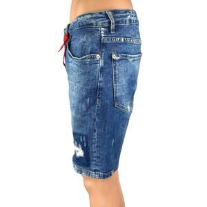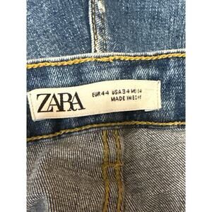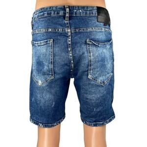 Zara Men's Blue Distressed Medium Wash Straight Bermuda Denim Jean Shorts Sz 34