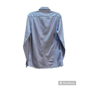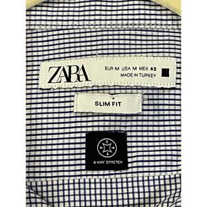 Zara Men's Blue Stripe Slim Fit Button Up Shirt Cotton Collared Soft Size M