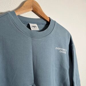 Blue Zara crewneck sweatshirt with skull design #skulldesign