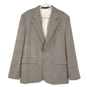 Zara Mens Business Academia Wool Blend Plaid Houndstooth Blazer Coat Size 42