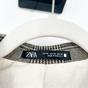 Zara Mens Business Academia Wool Blend Plaid Houndstooth Blazer Coat in Tan and Brown. Size EU 52 US 42.