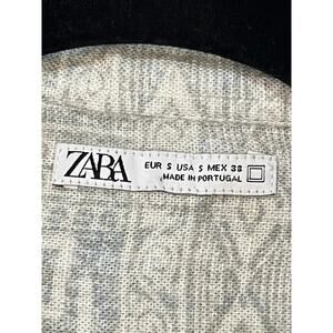 Zara Mens Button Down Long Sleeve White Green Size Small