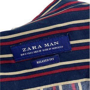 Zara Men's Casual Multicolor Relaxed Fit Striped Button Down Shirt Size Small S