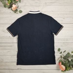 Zara Mens Casual Polo Short Sleeve Navy Blue Sz XL