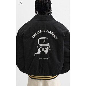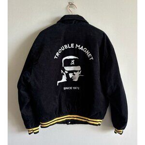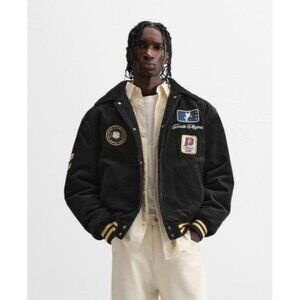 Zara Mens Combination Patches Embroidered Corduroy Varsity Jacket Black Sz L