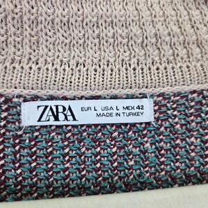 Zara Mens Crochet Knit Sweater Polo Large Aztec Diamond Collared Retro Tribal