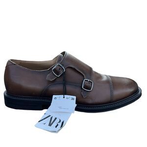 Zara Men's Double Buckle Leather Dress Shoes Size US 9 UK 8 EUR 42 NWT