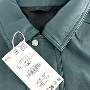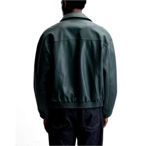 Zara Men's Duck Green Leather Effect Jacket Size L