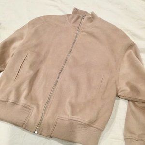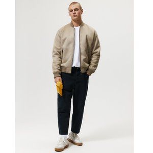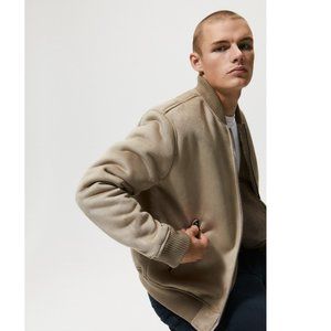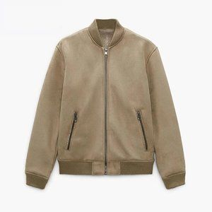 Zara Men's Faux Suede Bomber Jacket Beige Sz XS