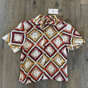 Zara Men's Geometric Crochet Shirt Multicolor L Large NWT