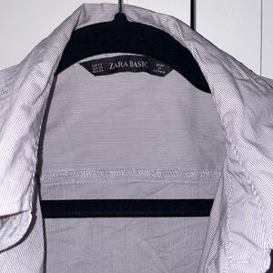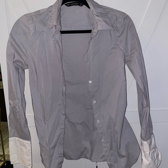 Casual gray shirt with white accents. Button-down style. Ideal for everyday wear.