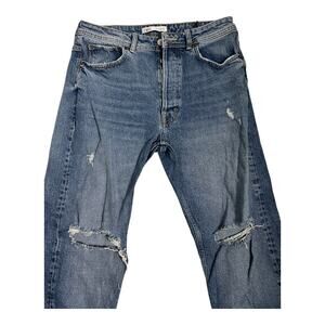 Zara Mens Jeans 32 button Fly Distressed Straight Denim