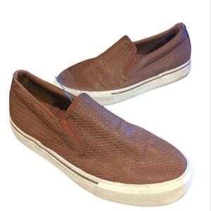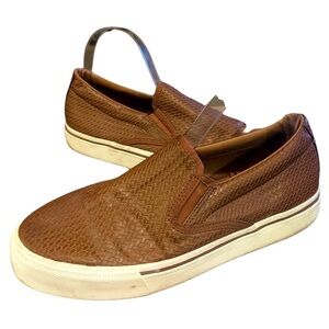 Zara Men's Laceless Sneakers Slip On Basket Weave Brown Vegan Leather 41 (US 8)