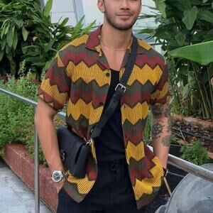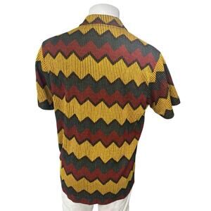 Zara Mens Multicolor Geometric Chevron Short Sleeve Button Down Shirt Top Size L