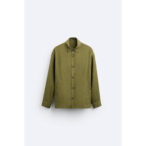 Zara Mens Overshirt Shirt XL Olive Green Button Up Long Sleeve 5320/405 NWT
