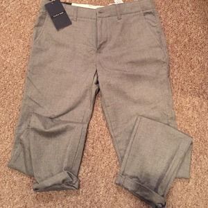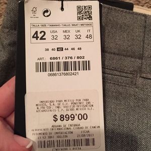 Slim fit. Brand new. Bought at Zara in Mexico. Didn't fit and too far to go to return :) 55% cotton 30% polyester 13%viscosa