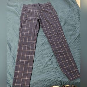 Stylish men's plaid pants by Zara. Features a black and brown checkered design. Perfect for a polished look.