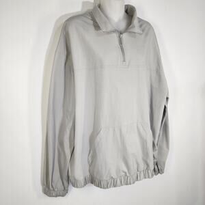 Zara Mens Pullover Jacket L XL Quarter Zip Elastic Hem Long Sleeve Gray Pocket