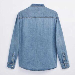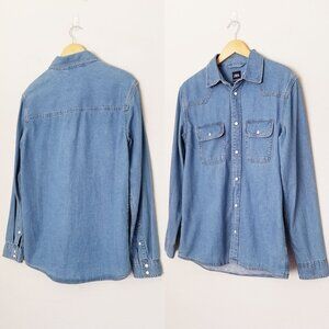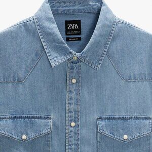 Zara Men's S Relaxed Fit Chambray Denim Western Snap Button Shirt S Long Sleeves