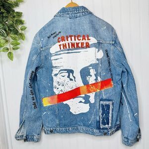 Zara Men’s Sz M Jean Denim Jacket Critical Thinker So Many Choices Just Light