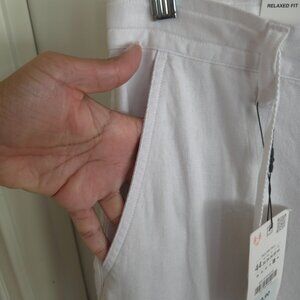 Fresh and versatile Zara men’s trousers in classic white. Features a modern slim fit with a zip/button front and an adjustable drawstring waist for comfort and style. Lightweight cotton blend fabric makes these perfect for spring, summer, and vacation looks.