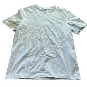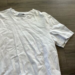 Zara Mens White Long Length T-Shirt Crew Neck Heavier Weight Size Medium