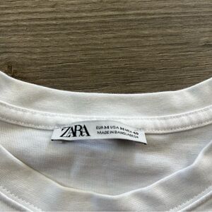 Zara Mens White Long Length T-Shirt Crew Neck Heavier Weight Size Medium. See pictures for measurements