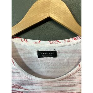 Zara Men’s White Short Sleeve Floral Pattern T-shirt Size Large