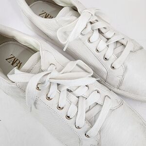 Zara Men's White Textured Lace Up Low Top Causal Sneakers Summer Shoes, sz 44