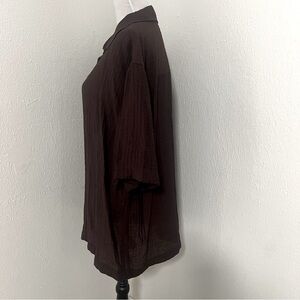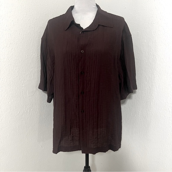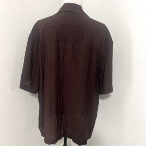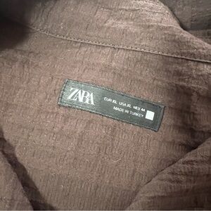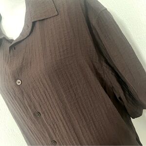 Zara Men’s XLarge Rich Brown Crinkle Effect Textured Top EUC Button Up Business